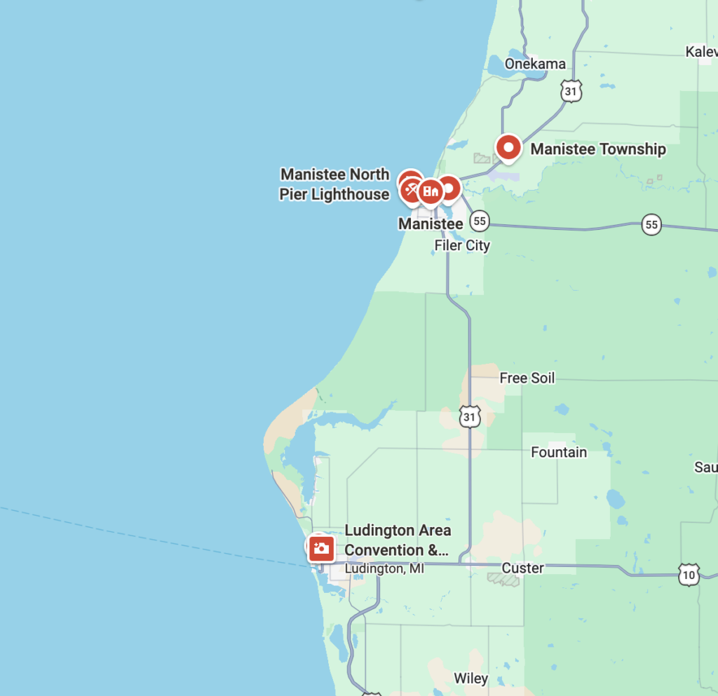 Manistee, Ludington, Onekama, Brethren, Bear Lake, Scottville, Pentwater, Irons, Copemish, Kaleva