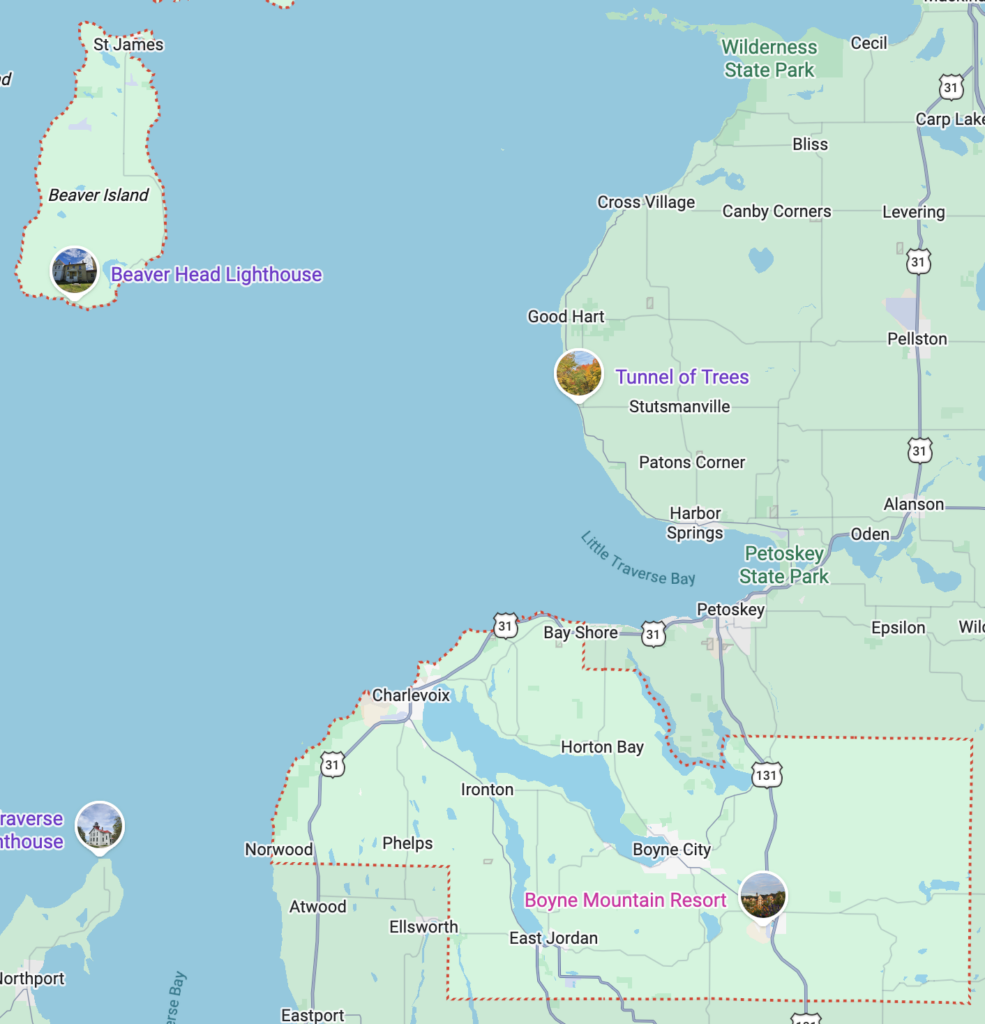 Boyne City, Charlevoix, Petoskey, Harbor Springs, East Jordan, Beaver Island