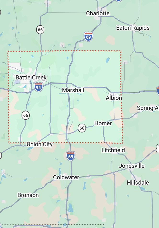 Albion, Athens, Battle Creek, Bellevue, Charlotte, Coldwater, Homer, Nashville, Tekonsha, Union City
