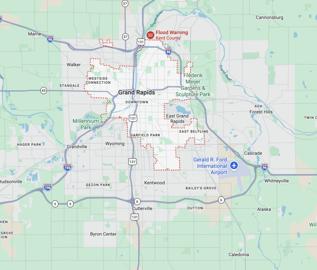 Grand Rapids, Wyoming, Hastings, Rockford, Ionia, Cedar Springs, Lowell, Hudsonville, Caledonia, Greenville, Comstock Park, Carson City, Wayland, Georgetown, Middleville, Saranac