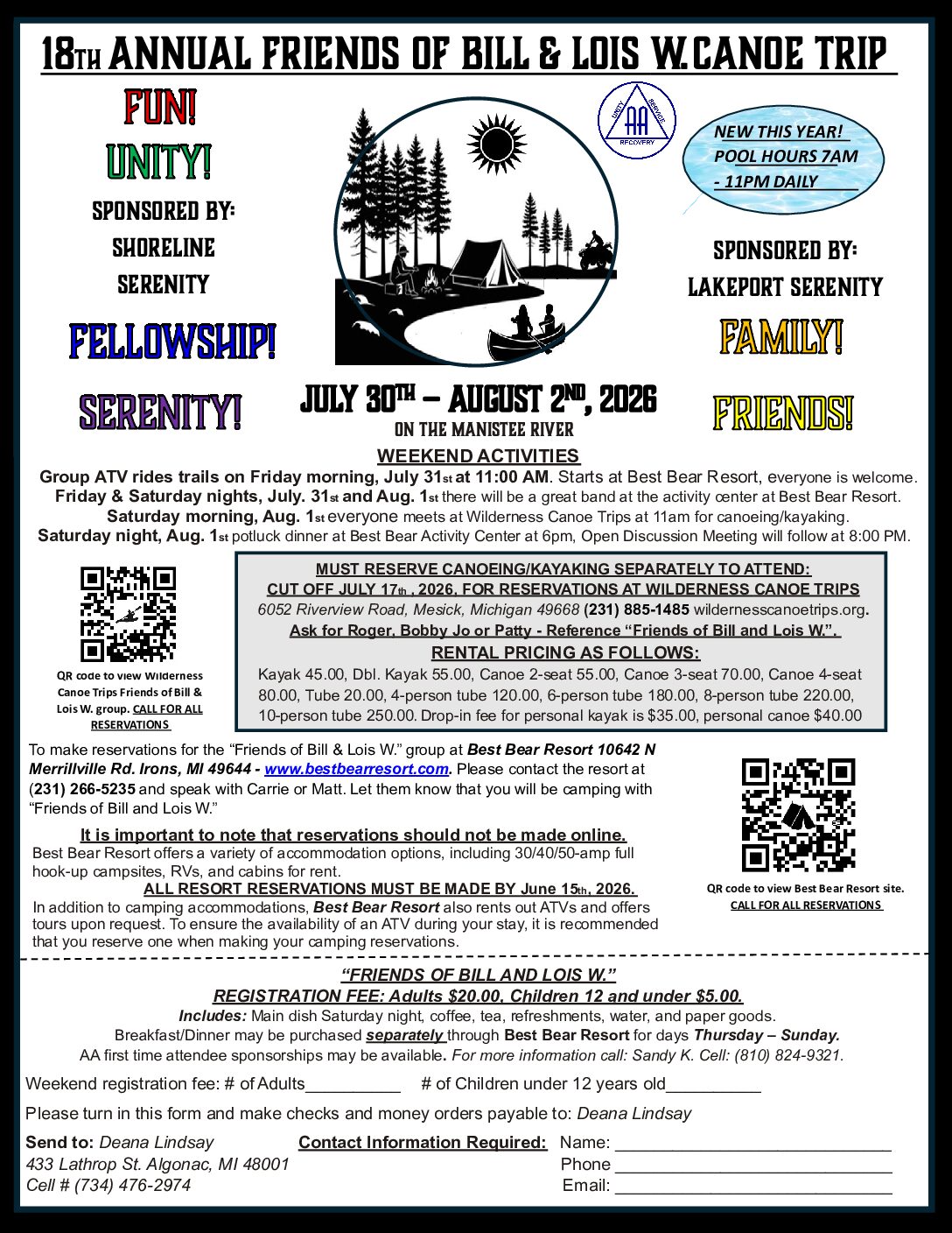 Manistee River Canoe Trip 18th Annual Friends of Bill & Lois