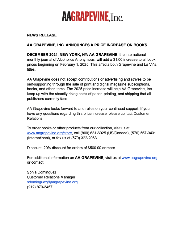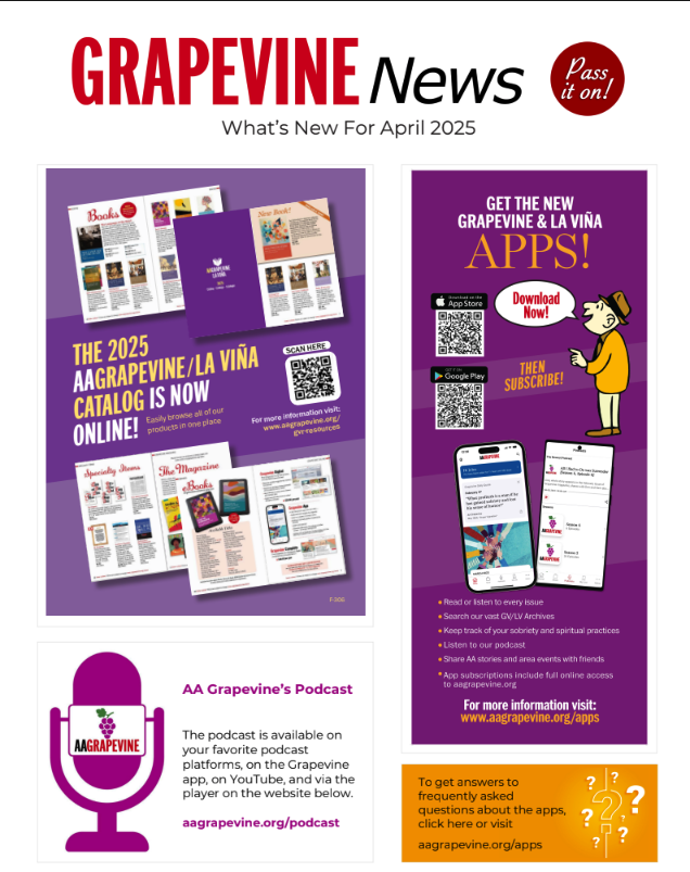 Become a Grapevine Representative! We are the link between AA Grapevine and groups. It’s a fun way to get involved! Whether you are a newcomer or a long-time AA member, there are many ways you can participate an support our Grapevine & LaVina!
