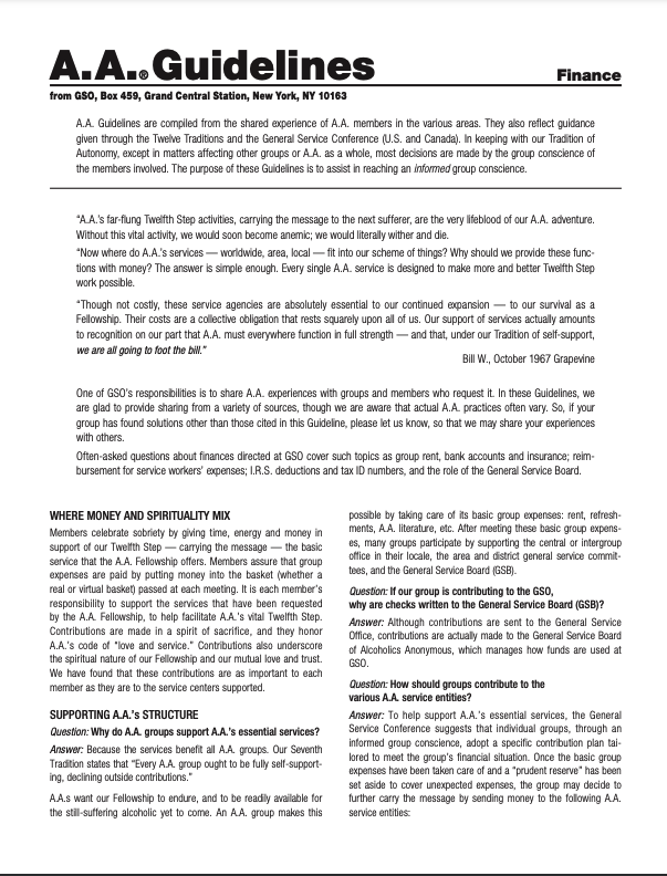 Reprinted with permission from from The A.A. Service Manual